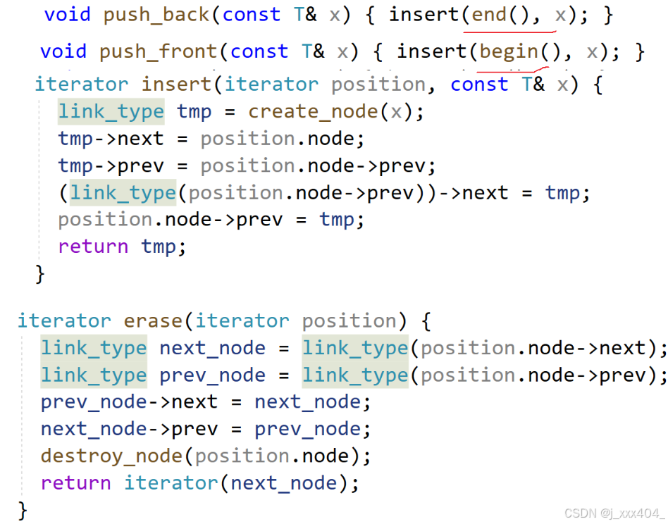 {Node* cur = pos._node;Node* prev = cur->_prev;Node* newnode = new Node(x);//prev newnode curprev->_next = newnode;newnode->_prev = prev;newnode->_next = cur;cur->_prev = newnode;