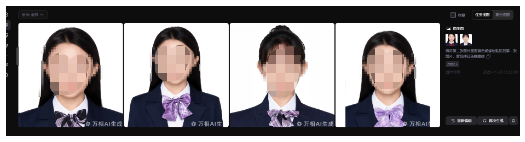 虽然黑紫领结无法做到一模一样,但整体效果还不错,但是PS切边,去掉万相AI的文字