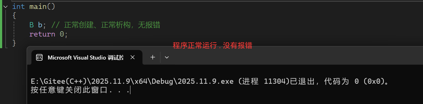 - delete p2 (基类指针指向 B 对象)会触发多态,先调用 ~B() (释放 _p 指向的数组),再调用 ~A() ,不会内存泄漏。