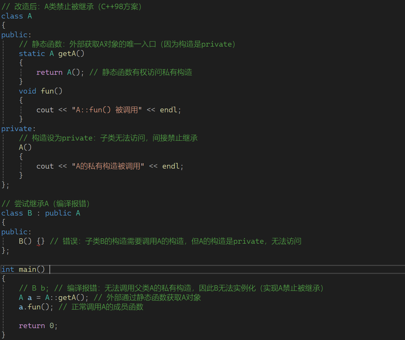 - 普通函数继承是一种实现继承,派生类继承了基类的函数,继承的函数可以使用,继承的是实现