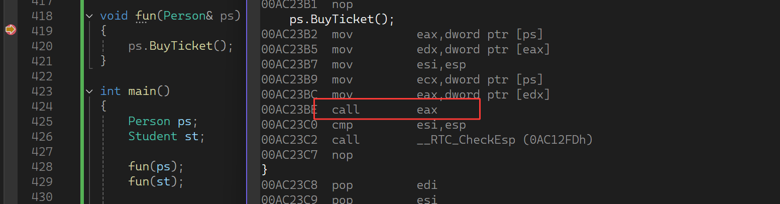 - eax中在这个场景下存储虚函数表中的虚函数的指针