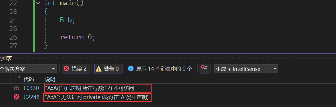 - 菱形继承的问题是数据冗余和二义性问题,虚继承是将具有两个及以上基类的派生类对象中基类的相同的成员独立成一份公共成员,放到派生类对象存储空间的开头或结尾位置(在vs中是放置到派生类对象存储空间的结尾位置),在基类的原位置放置一个指针,这个指针叫做虚基表指针,这个指针指向虚基表,虚基表是用来找虚基类的,表中存储虚基表指针到公共成员的地址的偏移量,根据这个偏移量就可以找打公共成员