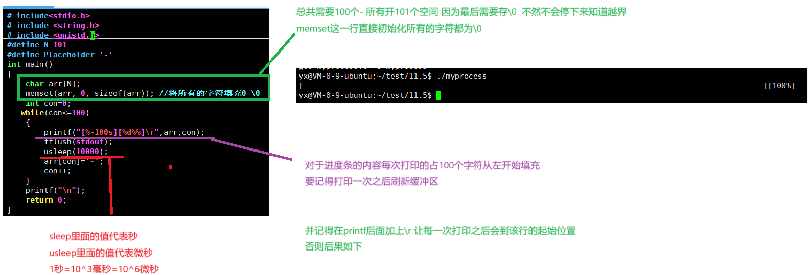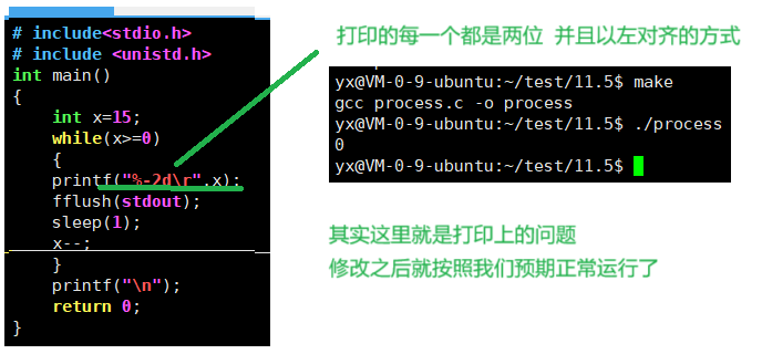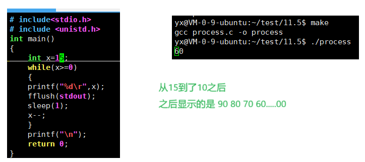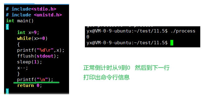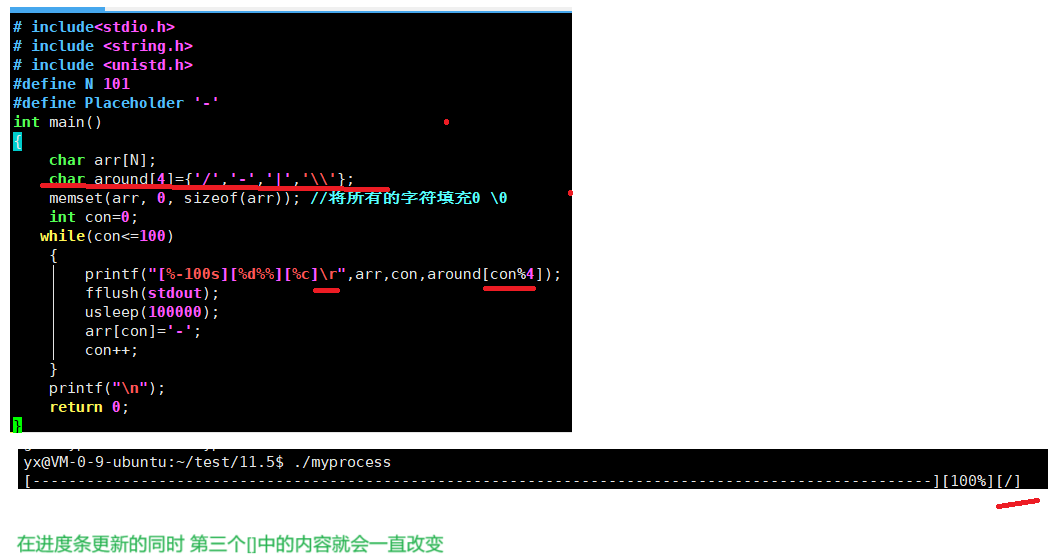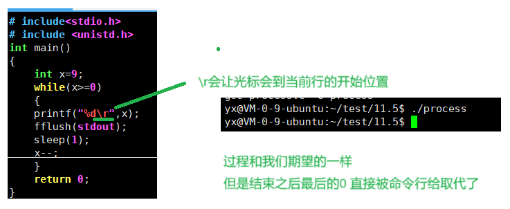 对于第②点用上面提到的fflush函数来解决 而对于第①点用到\r (\r不会刷新缓冲区)