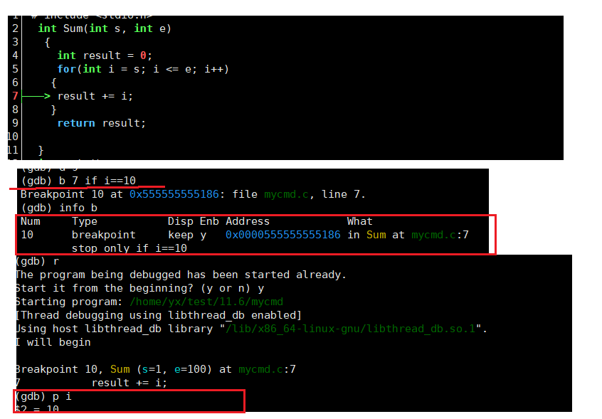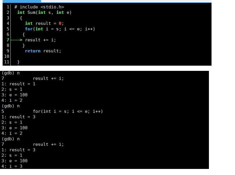 gdb会自动记录最近一次输入的命令 此时回车键就会指向最近一次的命令