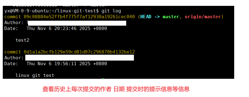 git log 可以查看历史上每次提交的作者日期 及提交时写的信息等