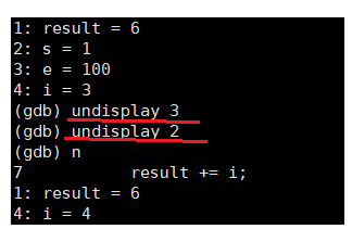 如下 在把result s e i这四个变量都用display后 在之后的每次调试中 这四个变量的值都会显示出来