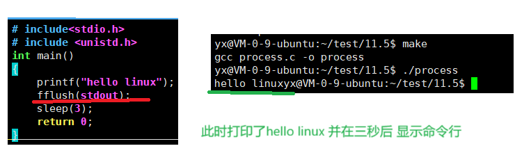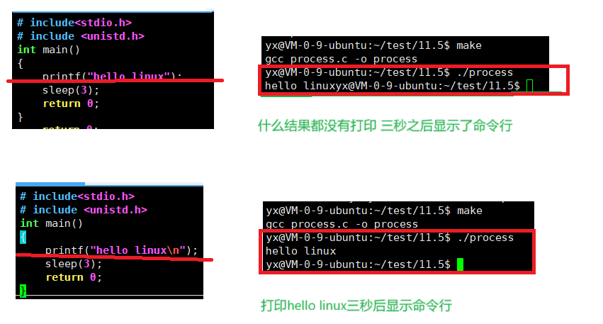 对于第一种没有\n的情况 发现没有打印任何内容 sleep三秒后就直接显示了命令行