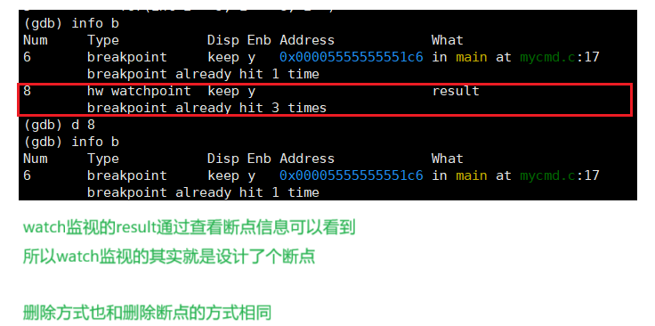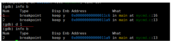 delete简写d+断点的编号 (不是行号 ) 删除断点