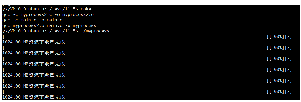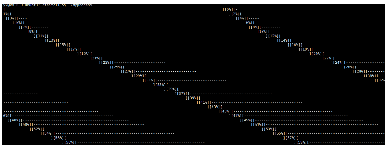 我们期望的形式如下 第一个[]里面是进度的表示 一共有100个空格 进度每增1就用一个字符-来填充 第二个[]里面显示进度的百分比形式 第三个[]来显示旋转光圈