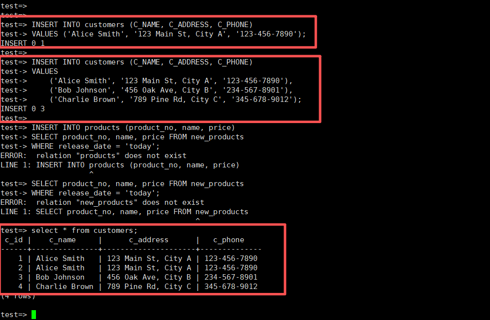 INSERT语句用于向数据库表中插入新数据。KingbaseES支持多种插入数据的方式: