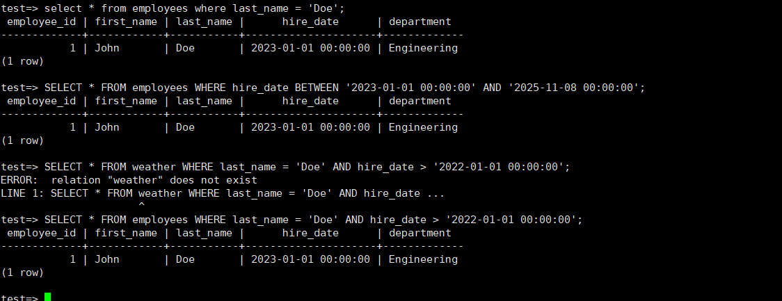 SELECT * FROM employee WHERE name SIMILAR TO '%(a|o)';-- 使用~进行POSIX正则表达式匹配