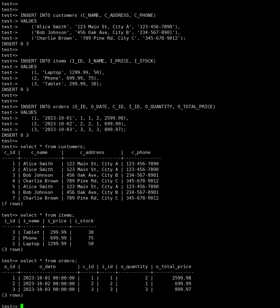 INSERT INTO customers (C_NAME, C_ADDRESS, C_PHONE)