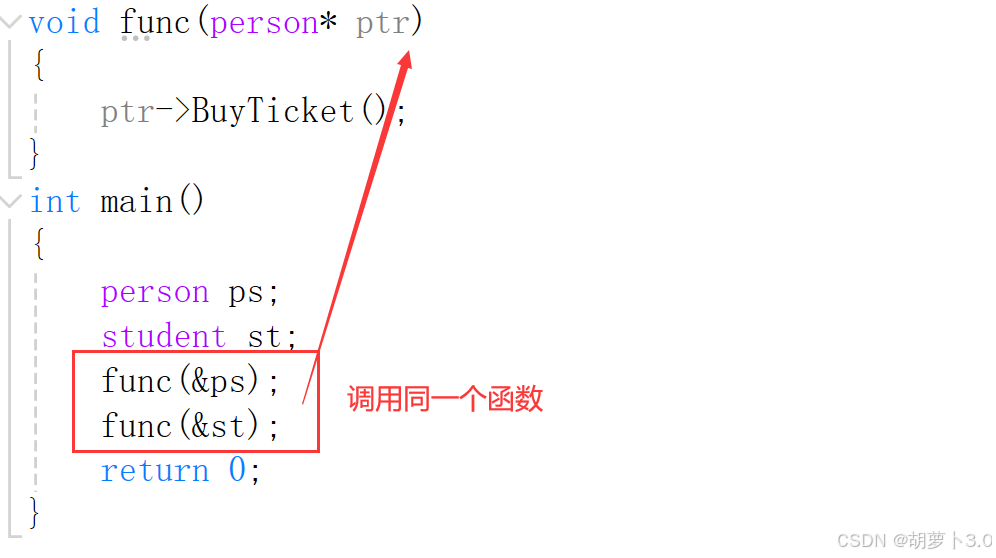 {Person ps;Student st;Func(&ps);Func(&st);return 0;