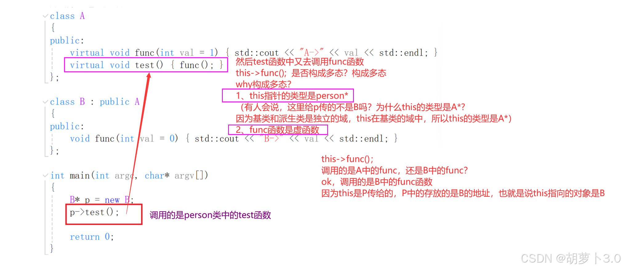- 第一必须是基类的指针或者引用,因为只有基类的指针或者引用才能既指向基类对象又能指向派生类对象;