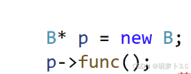 ok,那这里没有满足多态的条件,不是多态调用,所以就是一个普通调用,普通调用就看调用指针或者引用的类型,指针p的类型是B*