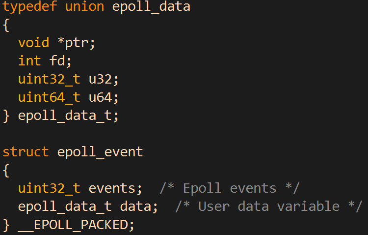 struct epitem{struct rb_node rbn;//红⿊树节点struct list_head rdllink;//双向链表节点struct epoll_filefd ffd; //事件句柄信息struct eventpoll *ep; //指向其所属的eventpoll对象struct epoll_event event; //期待发⽣的事件类型