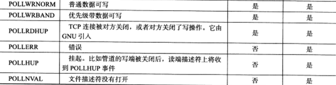 struct pollfd {int fd; /* file descriptor */short events; /* requested events */short revents; /* returned events */