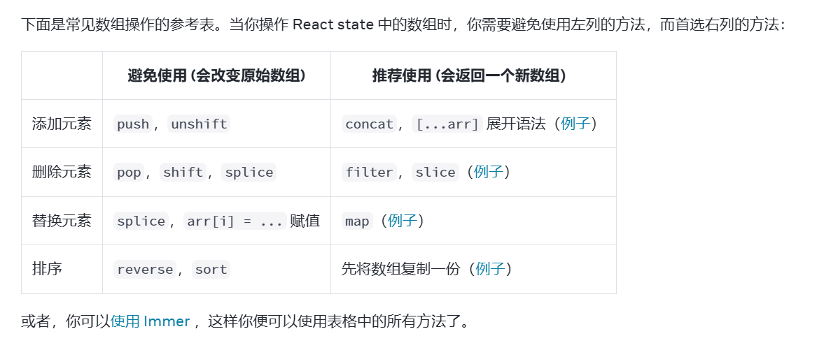 2. “不要直接修改数组,而是创建它的一份新的拷贝,然后使用新的数组来更新它的状态。”