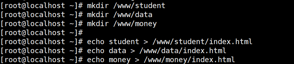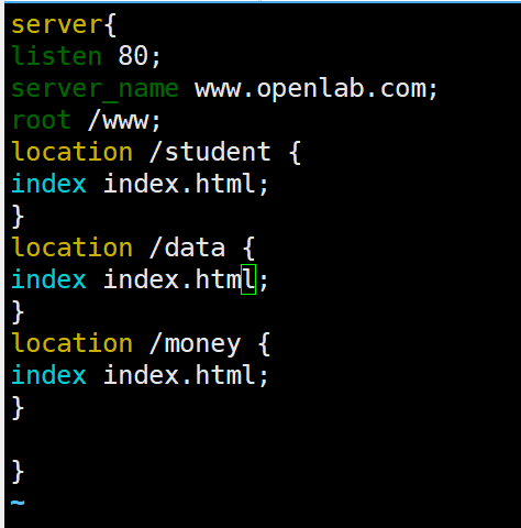 2.给该公司创建三个子界面分别显示学生信息,教学资料和缴费网站,基于www.openlab.com/student 网站访问学生信息,www.openlab.com/data网站访问教学资料