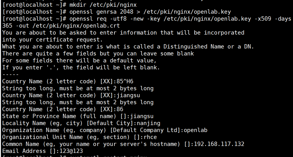 [root@localhost ~]# openssl genrsa 2048 > /etc/pki/nginx/openlab.key