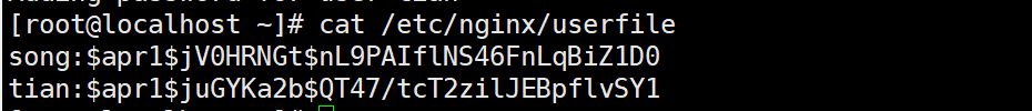 [root@localhost ~]# htpasswd -c /etc/nginx/userfile tian