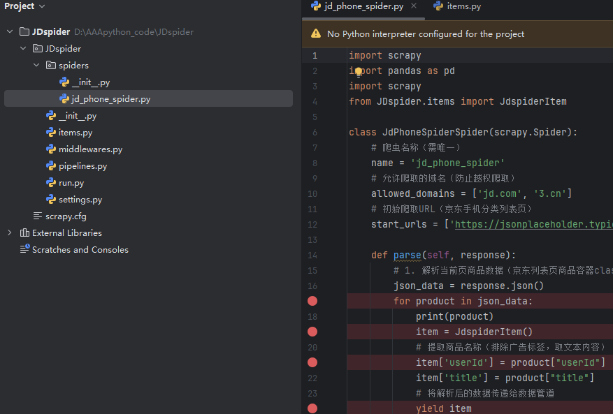运行爬虫 :scrapy crawl 爬虫名,不想手动输入命令的话,可以写一个python文件