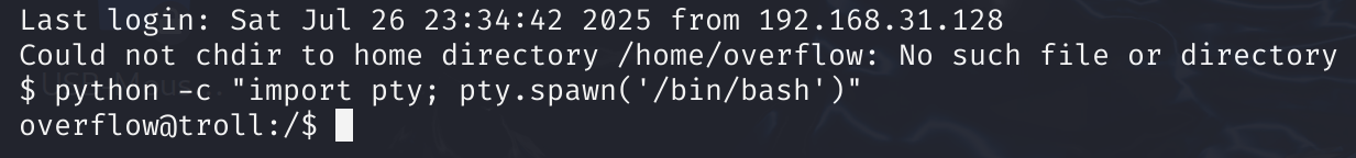 python -c "import pty; pty.spawn('/bin/bash')"获得完整终端