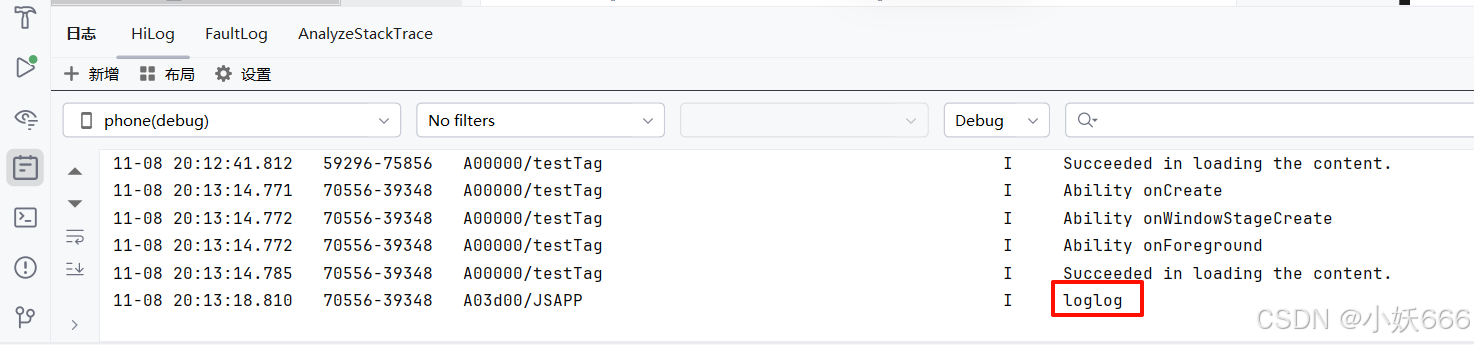 当前位置: 首页 > news >正文 DevEco Studio 查看 previewer 里 console.log 的日志 news 2025/11/9 10:43:19 想查看在 previewer 里执行的 console.log 日志 在底部 log 面板下,如果没有按 Ctrl + Alt + 5 显示 console.log('loglog') 查看全文 http://www.dtcms.com/a/586224.html 相关文章: 天津河东做网站贵吗青岛网站设计公司联系方式 SpringBoot面试题04-BeanDefinition 电脑网站怎么创建到桌面上讲课app怎么制作 东莞网站建设怎么收费wordpress中文分享插件下载 CosyVoice 2 部署加速推理模型(Ubuntu 24.04) 【C++初阶】string类的模拟实现 学做网站根学ps有前途吗网站建设费 科目 铁岭做网站包括哪些微信运营工具 GUI自动化测试--自动化简单示例 深圳住房建设厅网站首页seop U盾(USB-KEY)的物理组成原理 C4D纽扣嵌条和拉链工具详解:服装建模的细节利器 访问中国建设银行官方网站学校网站建设会议讲话稿 沧县网站制作价格网页设计尺寸多大 Step7 组态 PC Station 与 CM1243-5 基于 Profibus 的 S7 通信 wordpress主题那个好河源网站页面优化ppt 【信号处理】(高斯分布)最大熵定理 网站备案号查电话号码php建站程序 遵化建设局网站近期新闻热点大事件 教育类集群网站建设python做网站优势 未成年人思想道德建设网站招标网上的项目好中标吗 【C++】封装哈希桶实现unordered_map和unordered_set 多语言网站建设应注意哪些事项做沙盘实训在哪个网站做 沈阳专业制作网站东莞家具网站建设 制造业营销外贸网站建设手机网站建设 技术规范 C# var 关键字详解:从入门到精通 使用 SQLAlchemy 连接数据库:从基础到最佳实践 如何使用Profiler进行内存分析? 12306网站开发携程网站建设计划管理与进度控制 淮南电商网站建设价格新校区建设网站管理规定