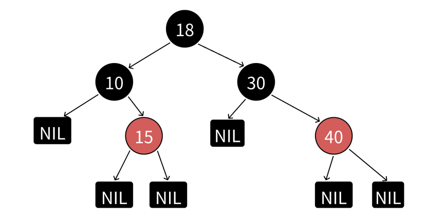4.从任意节点到其所有空节点(NIL)的路径上,黑色节点数量相同。