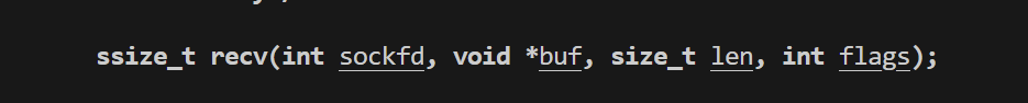 函数功能:从已建立连接的套接字(如 TCP 连接)中接收数据,将数据存入指定缓冲区。