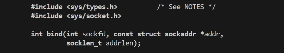 函数功能:将套接字描述符sockfd与指定的网络地址addr绑定,使套接字能通过该地址接收网络请求(服务器端必须调用,客户端通常可选)。