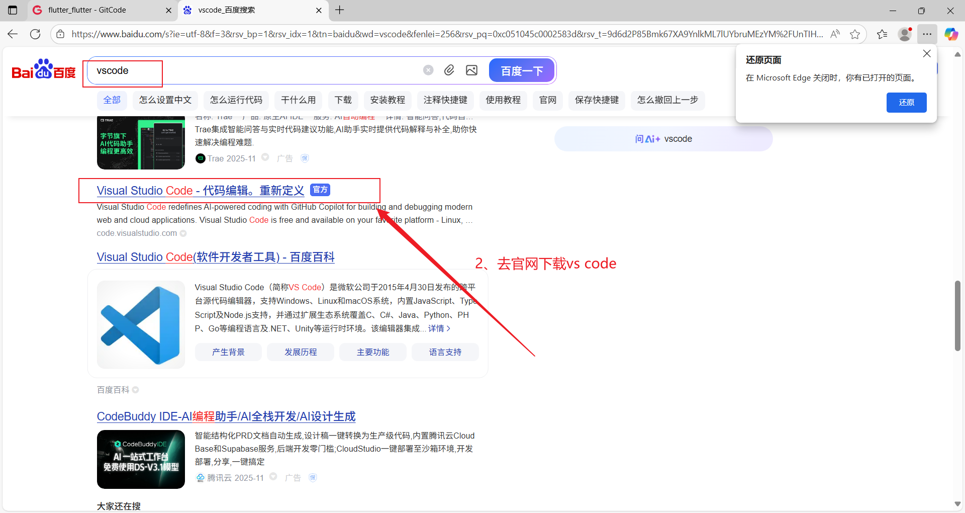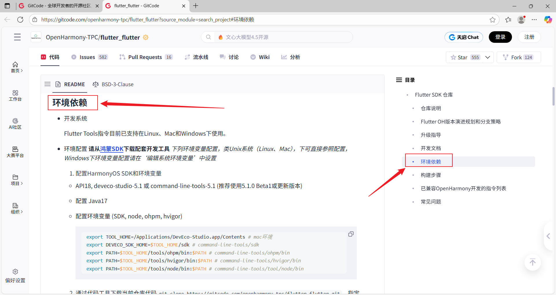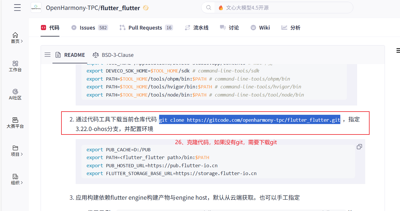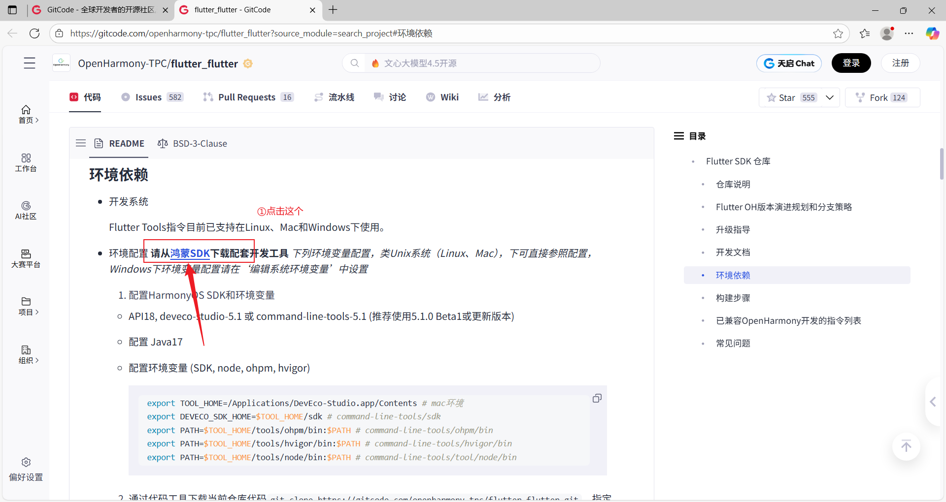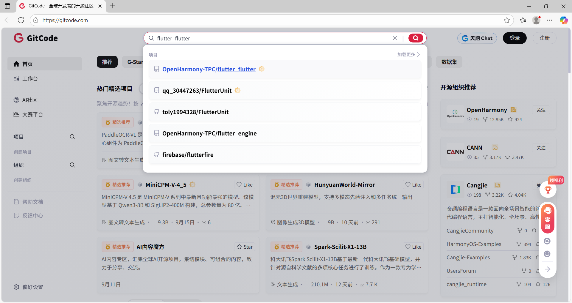 2.1. GitCode上面搜索flutter_flutter,如下图所示,点击第一个仓库(OpenHarmony-TPC/flutter_flutter):