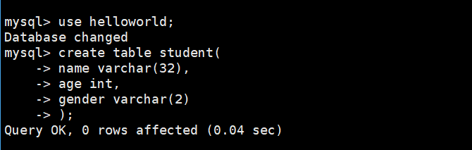 再创建一张数据库表,不过要先使用数据库,就好比有这么多个目录你要进入哪个目录进行操作