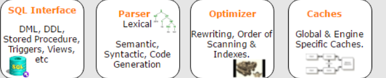第一层是一个连接池,对于一个mysql服务来讲它首先是把连接做好管理,并且mysql也是要有权限认证的,对于用户的合法身份进行鉴别,还有保证一些安全的合法策略就是在这一层实现的。