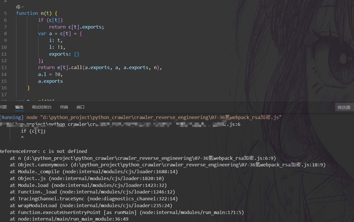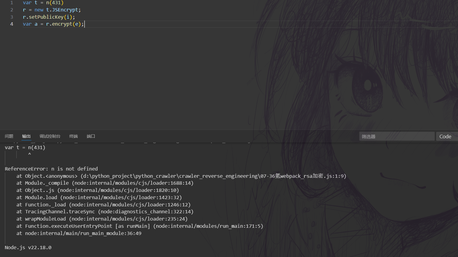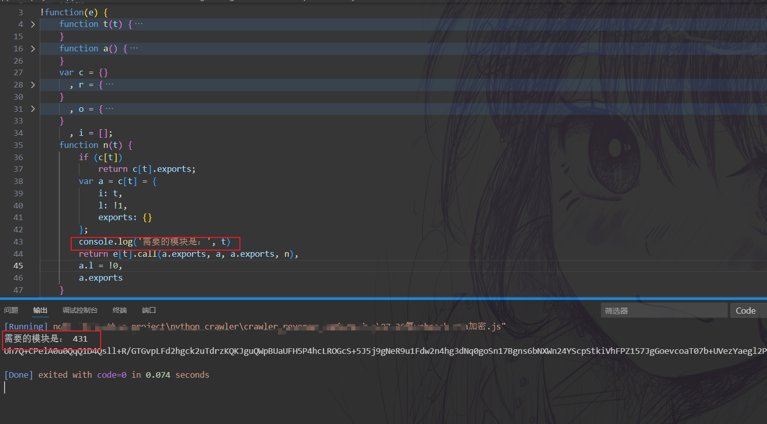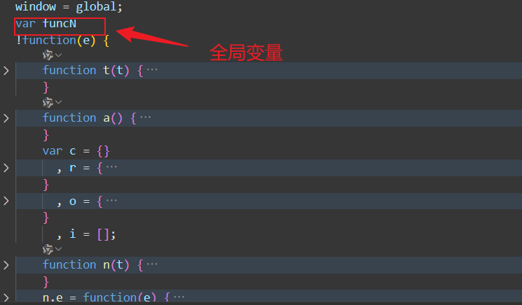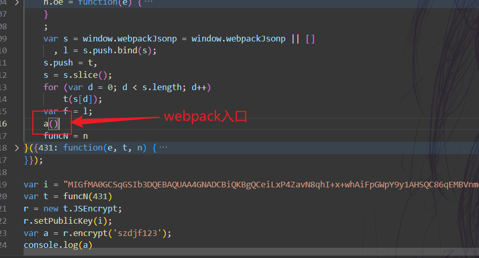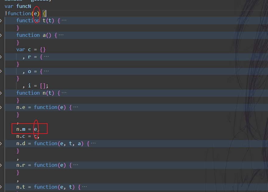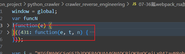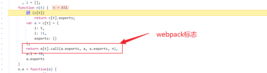再结合我们刚看到的标志,这里就是一个webpack加载器,而且是模块单独打包的webpack,咱直接把这个文件全复制下来,将之前的n函数覆盖掉,n就是webpack加载器,已经在我们复制的代码里面了,之后代码大体就是这样: