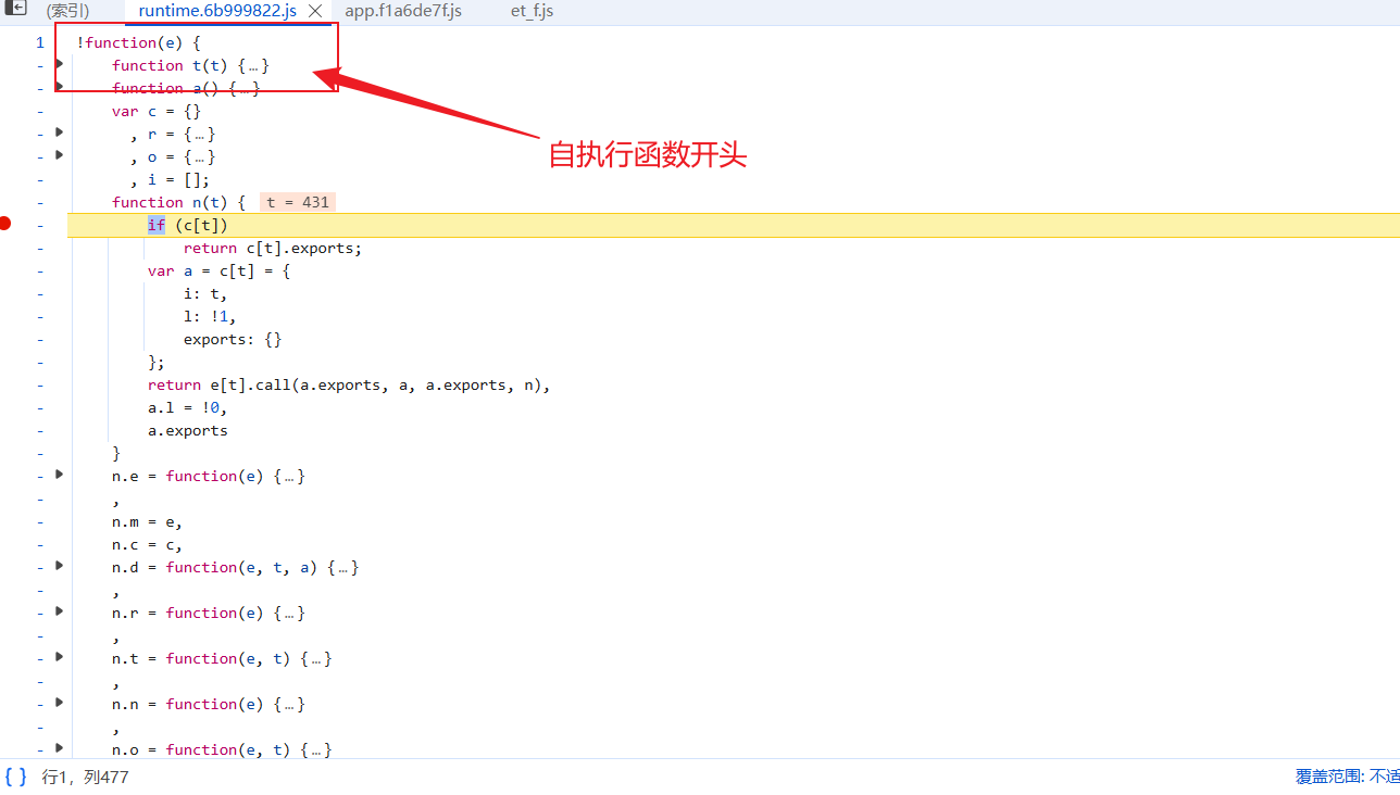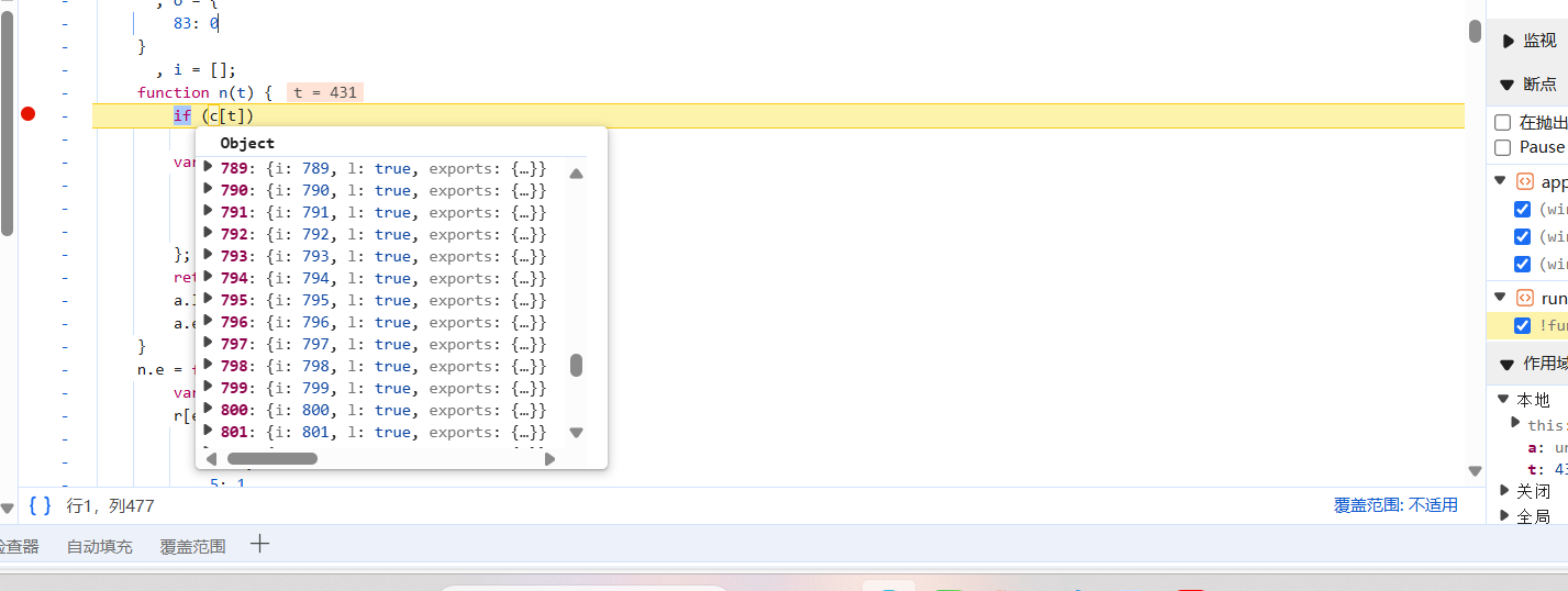 需要431模块,但我们怎么去找呢,之前我们说过自执行函数的形参中有所有的模块,这里的形参是e,ok,那你看看这里有个什么: