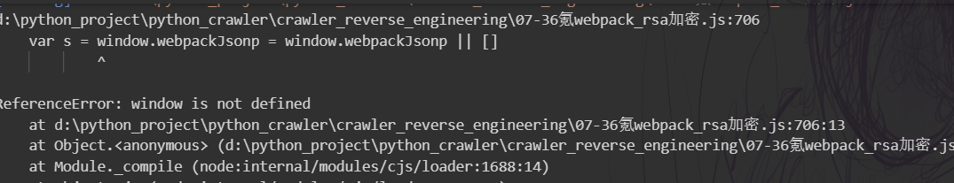报错window不存在,js代码一般会有环境监测,不在浏览器的话没办法运行,node的环境与浏览器有些区别但是区别不大,咱可以写一句这样的代码: