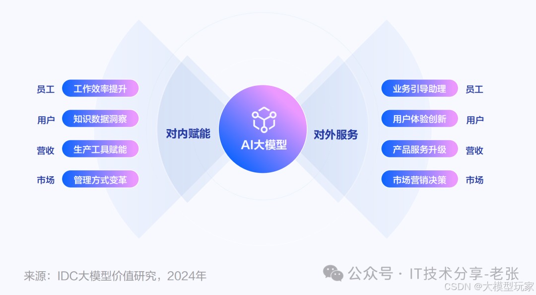 前言,从2023年初ChatGPT重磅亮相开始,大模型技术的发展成为了AI领域的焦点,驱动了AI应用的升级和创新。在ToB业务领域,AI大模型技术也在逐步改变企业的业务开展、产品服务、运营管理的传统模式,企业端对大模型的应用也已从初步的技术探索与创新尝试,逐渐步入以实现商业价值为核心的新时代,其中构建商业闭环、验证价值的应用场景是关键,作为相关领域从业者,也要了解AI大模型的核心能力和典型应用领域。结合IDC 2024研究报告的内容和大家简单聊聊!
