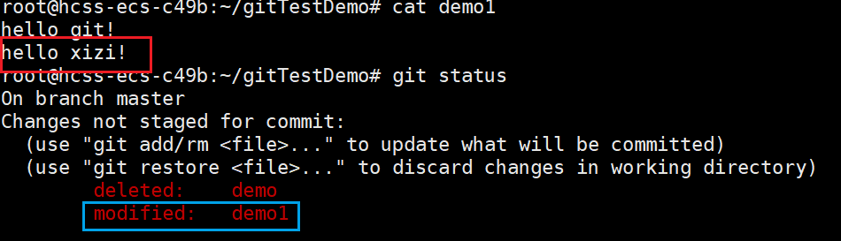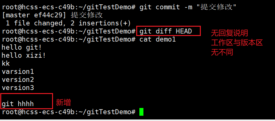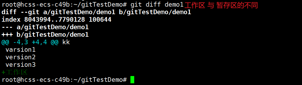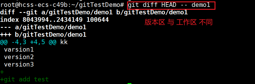 如下:在输入命令之前,我提前修改了,发现如图类似说明,版本库与工作区有差异。