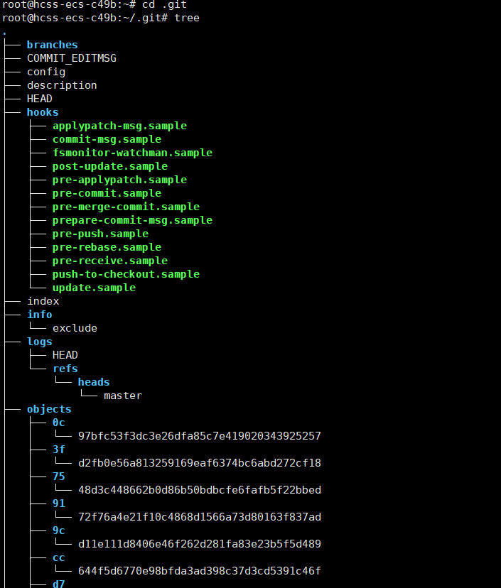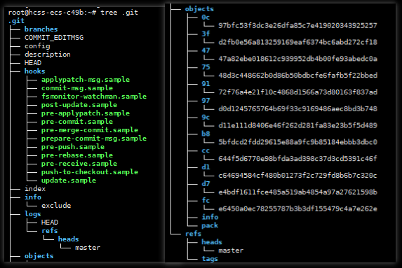- objects: 包含了创建的各种版本库对象及内容,可以简单理解为放了 git 维护的所有修改。