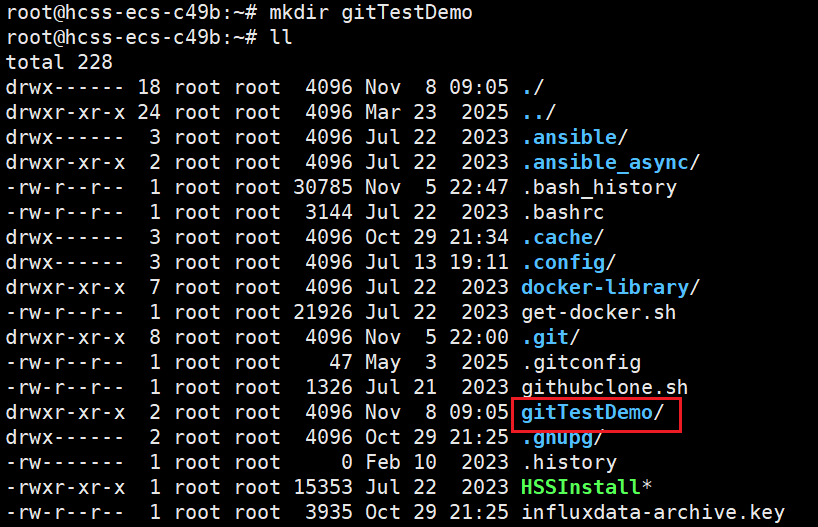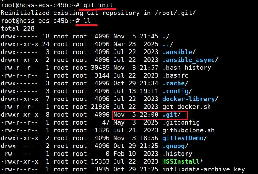 我这里已经有了,所有如果你是第一次创建,会和我的输出有所不同,其中 .git 文件便是 git init 命令创建出来的。