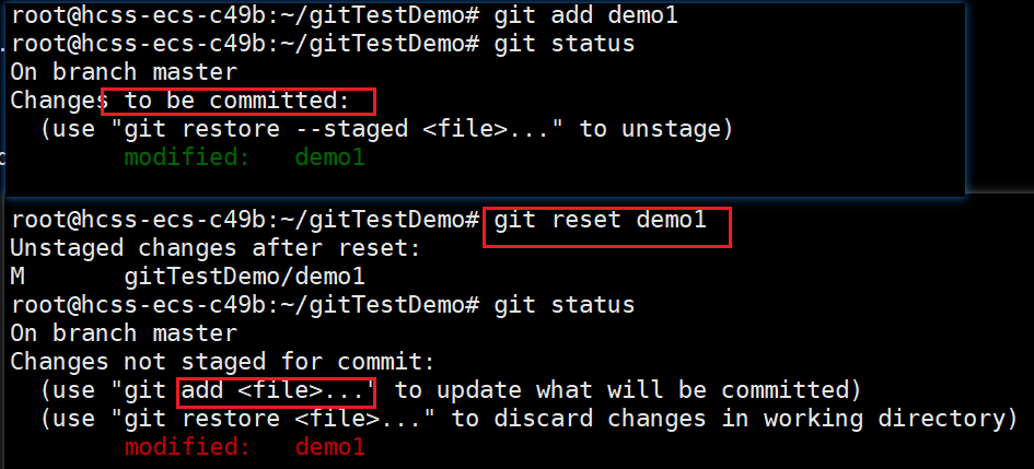 步骤一:git reset 回退命令 (--mixed 为默认选项)