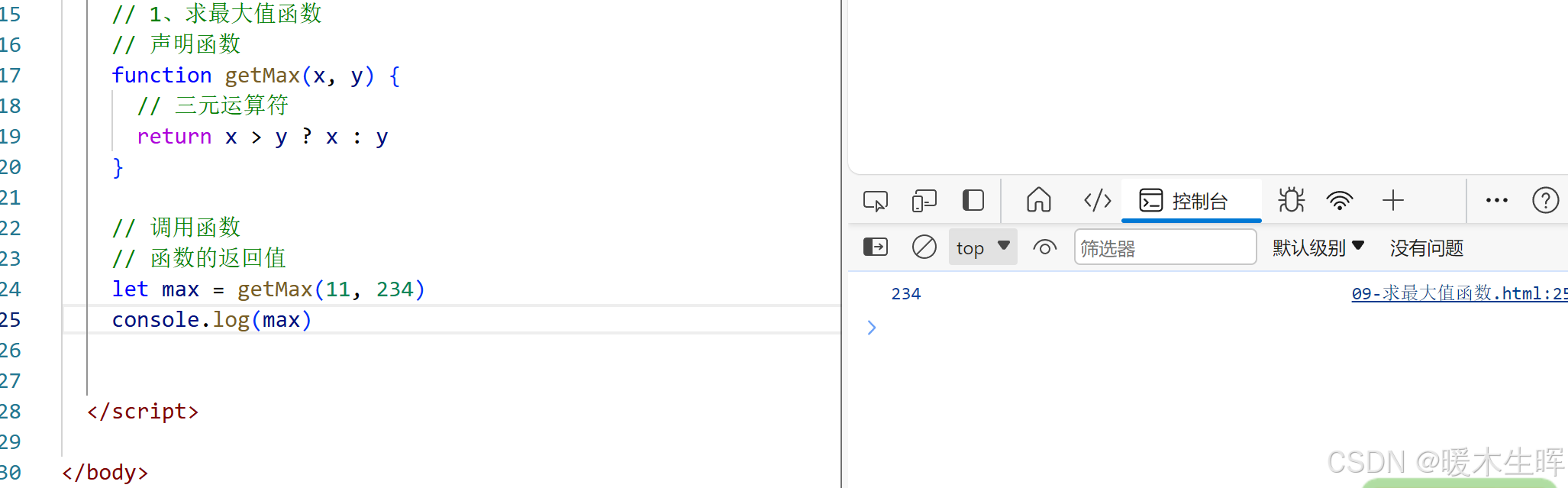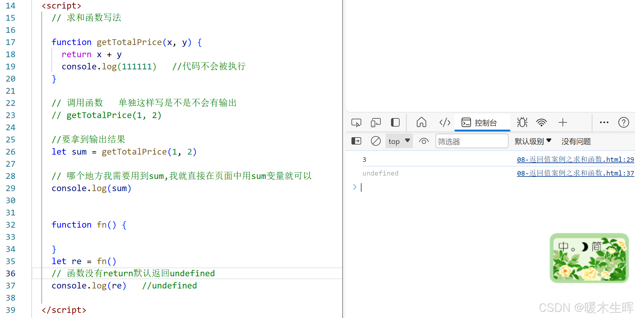 (2)return 后面的代码不会再被执行,会立即结束当前函数,所以return后面的数据不要换行写,return最好是写到最后面。