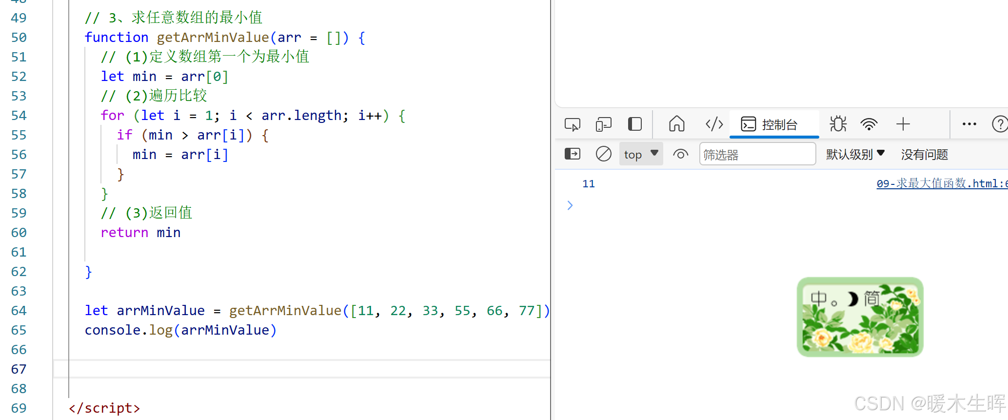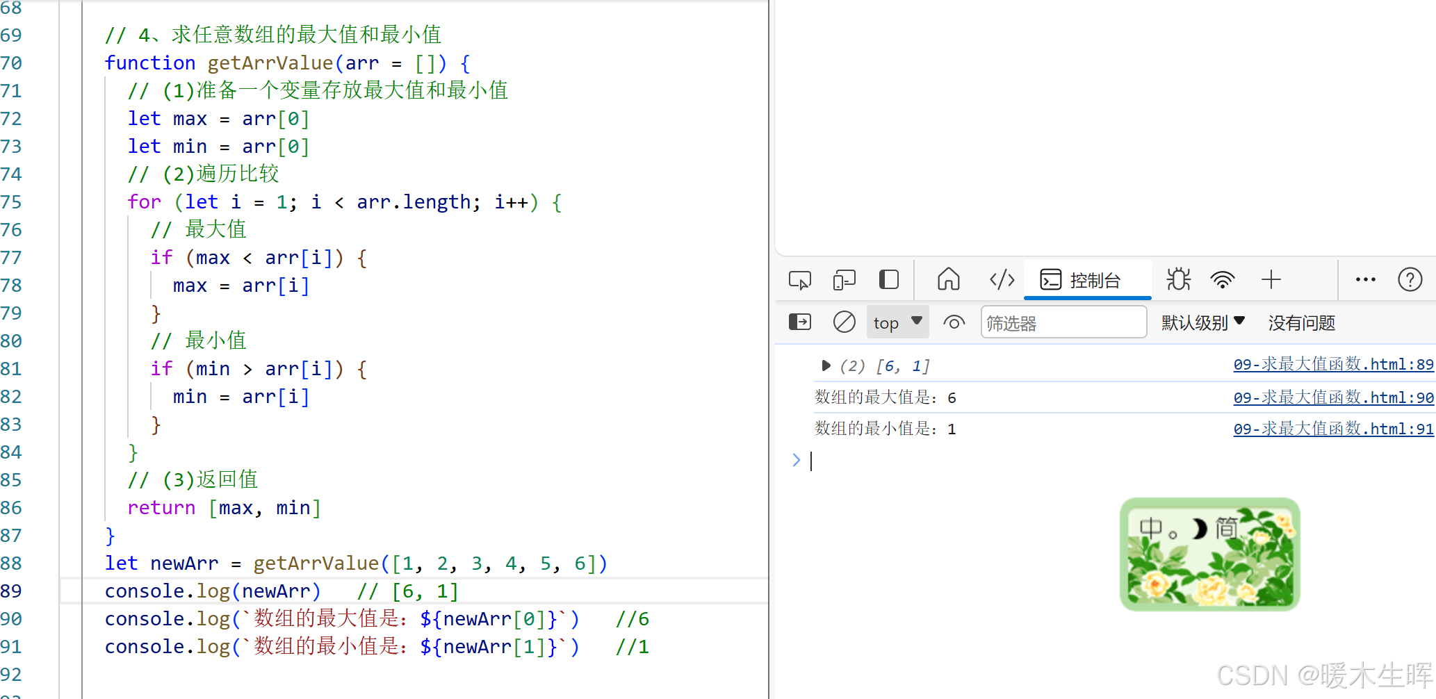 (4)求任意数组最大值和最小值的合并写法。通过返回数组,来存放最大值和最小值。