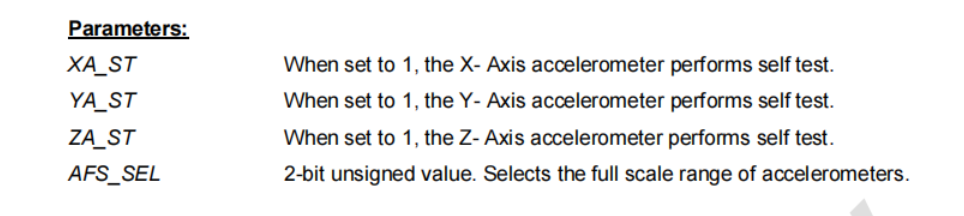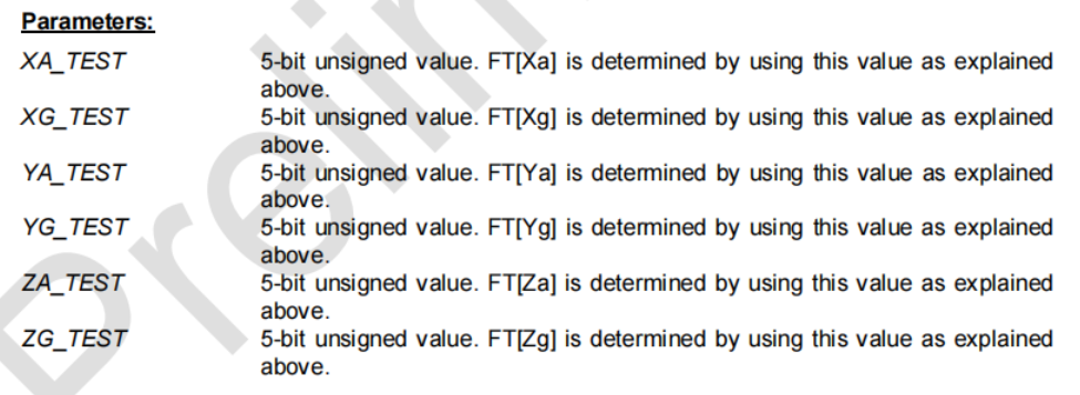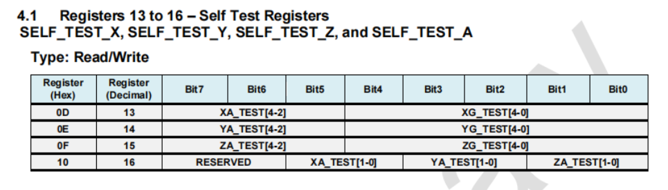 用于设置陀螺仪和加速度计的自检功能,需要通过数据手册的计算公式,写入数值,详细介绍看手册