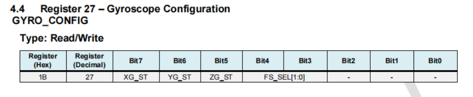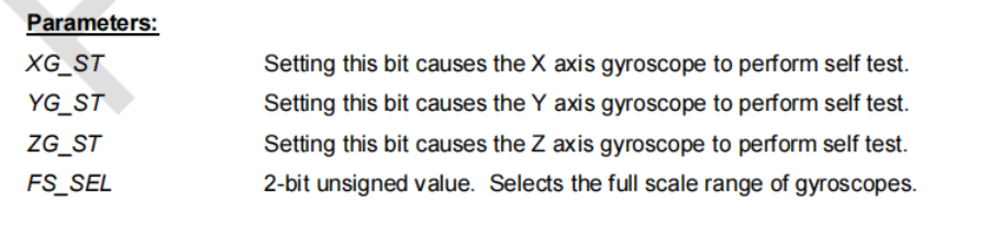 [3:4]位,用于设置陀螺仪检测范围,[5:7]用于陀螺仪对应XYZ轴的自检使能