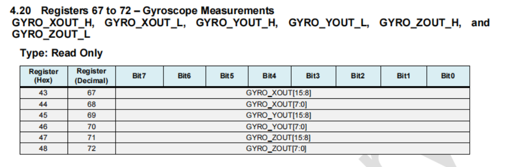 (20)寄存器67-72(采集到的陀螺仪数据)