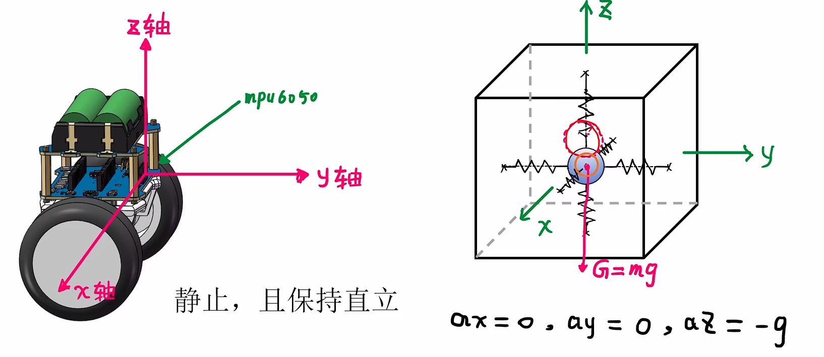 由于内部的惯性,小球会被往反方向施加一个反作用力,如此一来就MPU6050就采集到了向Y轴施加的加速度力。