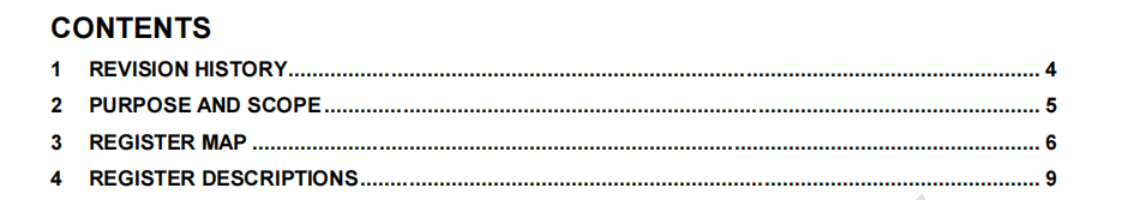根据MPU6050数据手册的目录,可以看到有四个章节,