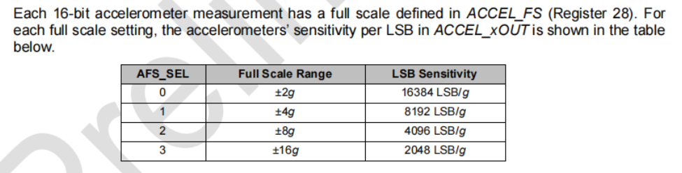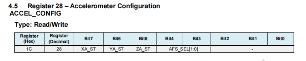 - 写入加速度计检测范围(向ACCEL_CONFIG写入0x00)